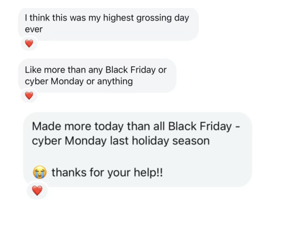 The results were jaw-dropping. Margaret’s 24-hour flash sale not only outperformed expectations but also became her best online sales day to date, surpassing even her Black Friday weekend!